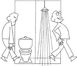 Туалет, сортир, отхожее место… Отношение к естественным надобностям до сих пор проходит под грифом, который одесситы формулируют так: «Ша, об этом не говорят!», что в современных усло–виях, когда сорван покров с большинства интимных тайн (начиная с секса), смотрится по крайней мере нелогично. Обратиться к незнакомому человеку с классической просьбой: «Бабка, дай попить, а то так есть хочется, что переночевать негде!» — это мы всегда пожалуйста. А поинтересоваться вслух, как пройти к туалету, — тут смелых раз-два и обчелся. Бывали случаи, и нередко, когда молодые люди на свидании достеснялись до разрыва мочевого пузыря.