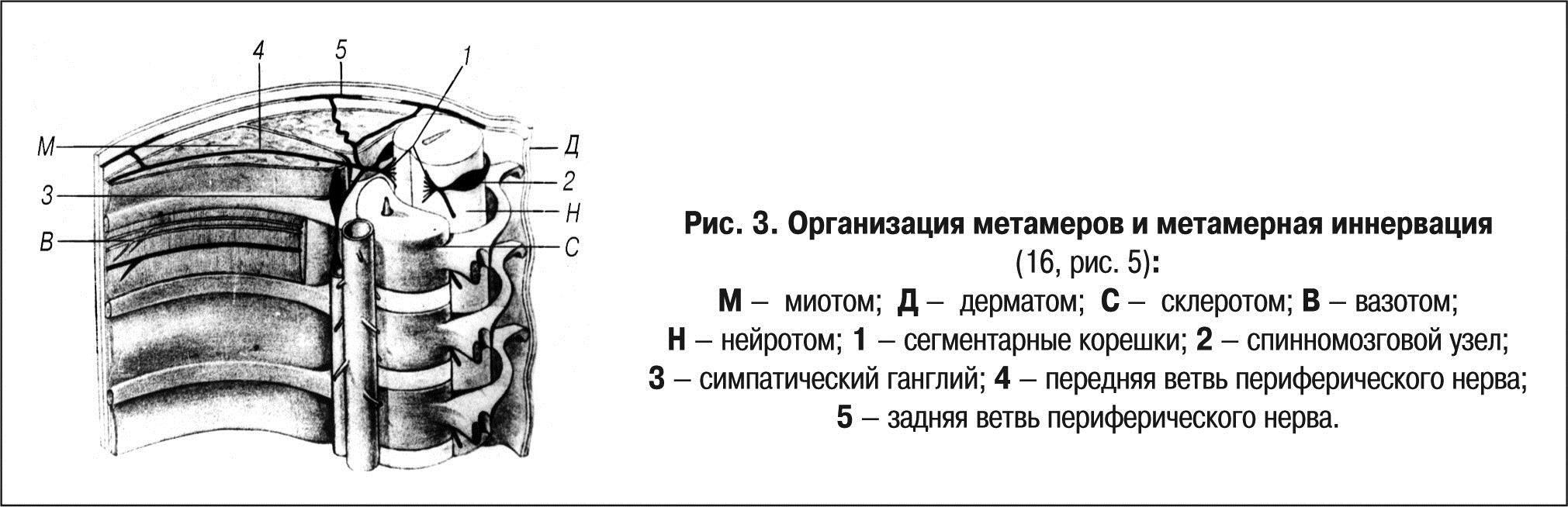 Рис. 3. Организация метамеров и метамерная иннервация (16, рис. 5):