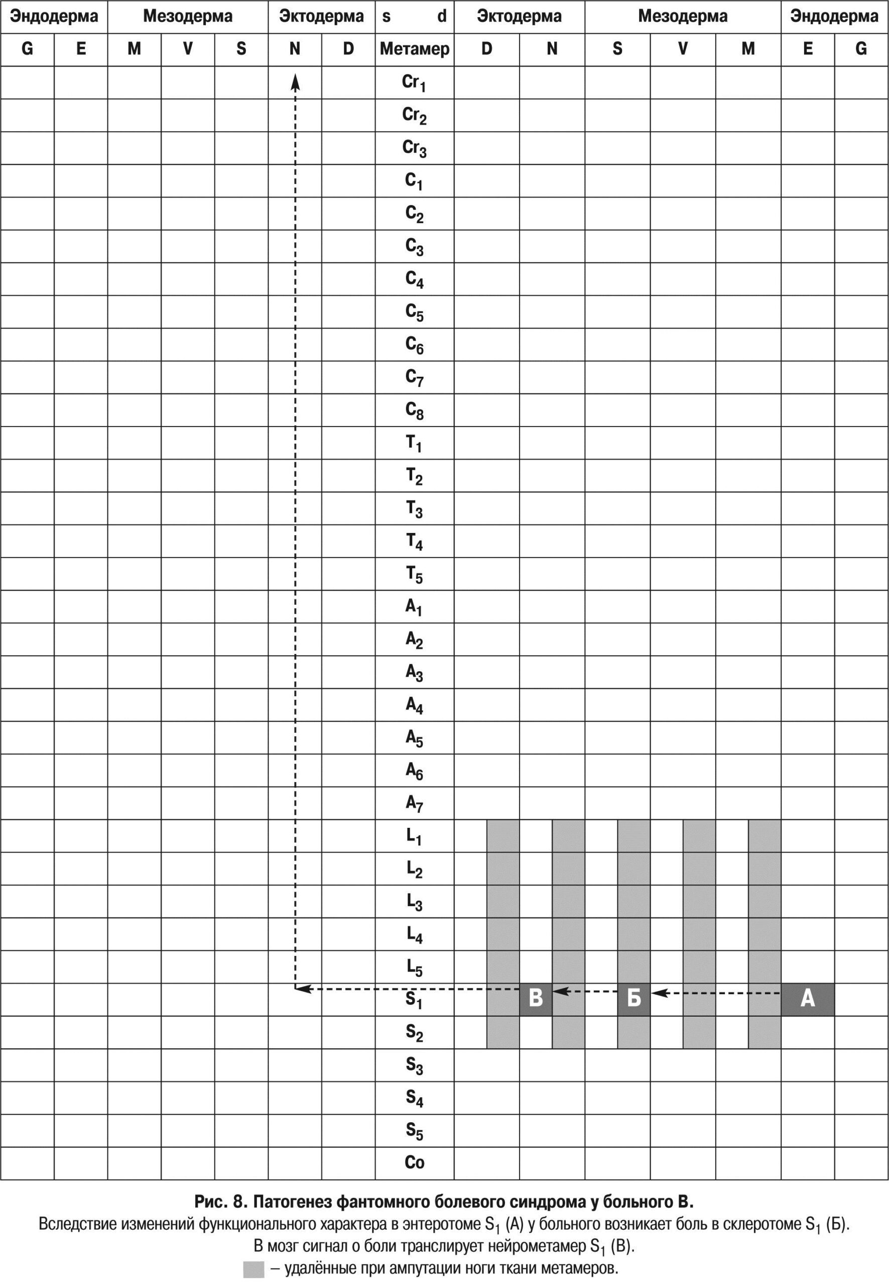 Рис. 8. Патогенез фантомного болевого синдрома у больного В.