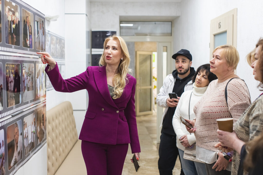 Зустріч відкрила та завершила Анна Аркадіївна Плавенчук, директор Медичного Центру Берсенєва. Вона провела для журналістів екскурсію центром, в якому все влаштовано для зручності відвідувачів, включаючи пацієнтів з особливими потребами.
